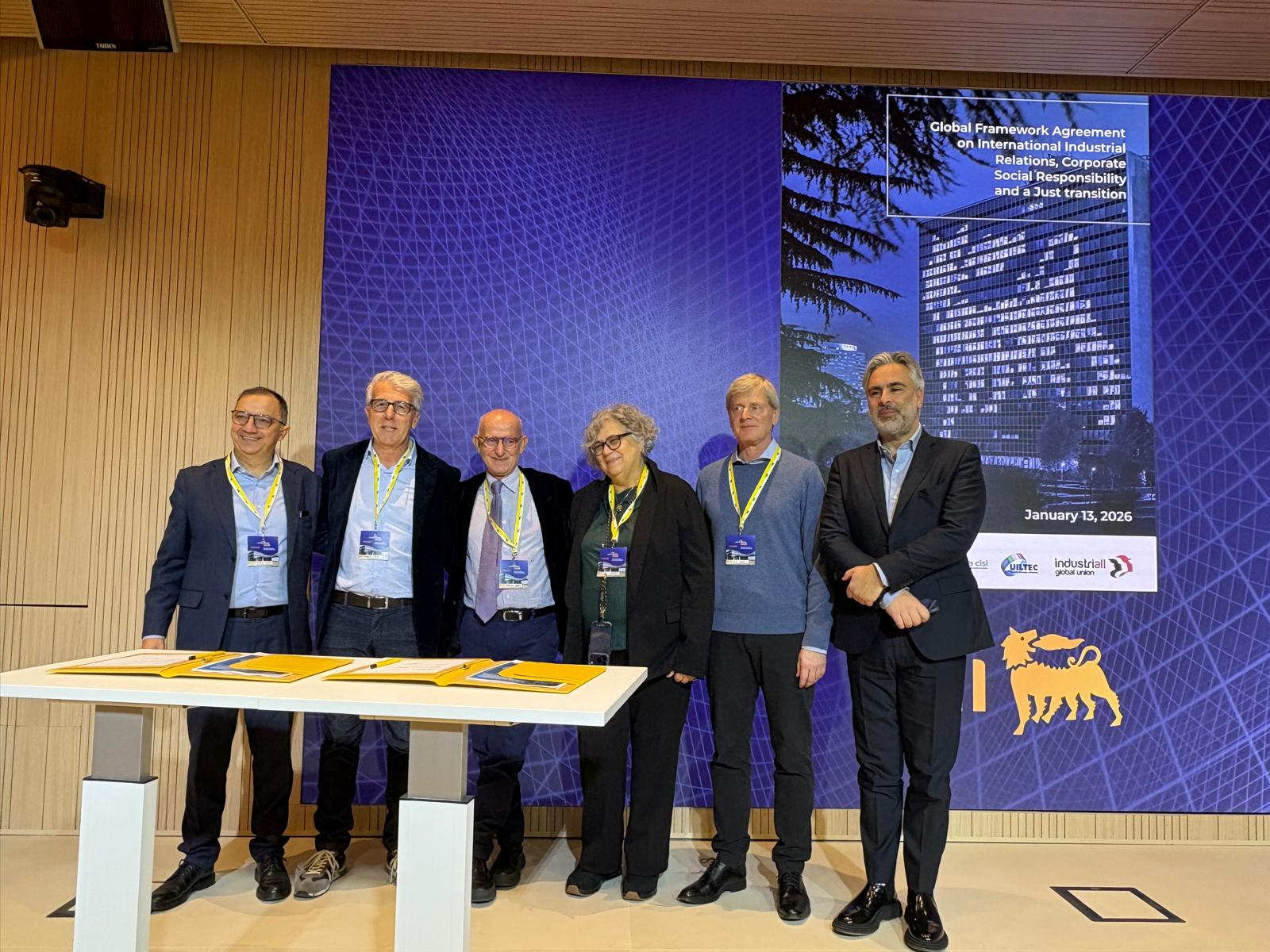 15 January, 2026IndustriALL Global Union has renewed the global framework agreement with Italian energy company ENI, updating and strengthening the previous one signed in 2019. This new agreement marks the continuation of more than two decades of social dialogue and global cooperation between the Italian energy company and the international trade union movement.