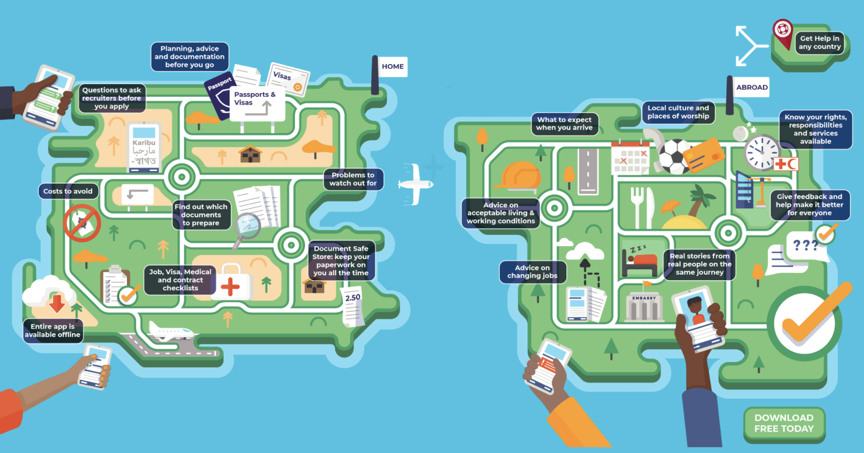 21 June, 2022Migrant workers planning on finding work or already working in Mauritius can find information about their rights at work, health and safety, and living wages on an interactive mobile app accessed on their smartphone.