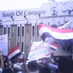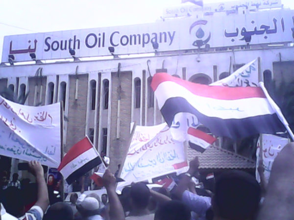 The major demonstration kicked off at 10am on Tuesday in a strong show of unity between workers from oil fields in North and South Rumaila fields, Berjsiyya and other locations (see video here).