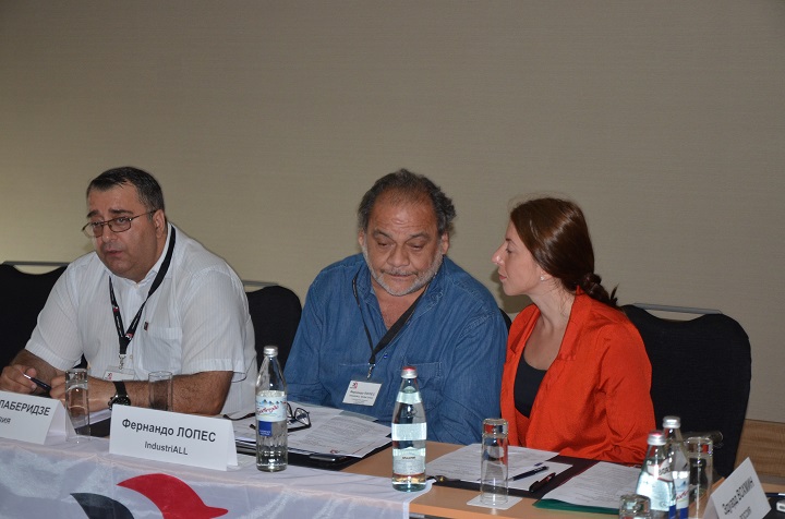Tamaz Dolaberidze, Chairman of the Trade Union of Metallurgy, Mining and Chemical Industry Workers of Georgia, spoke about the pressure exerted on the unionized workers at the RMG Gold and RMG Copper enterprises. He also reported on the organizing project supported by the Norwegian union Industri Energi.