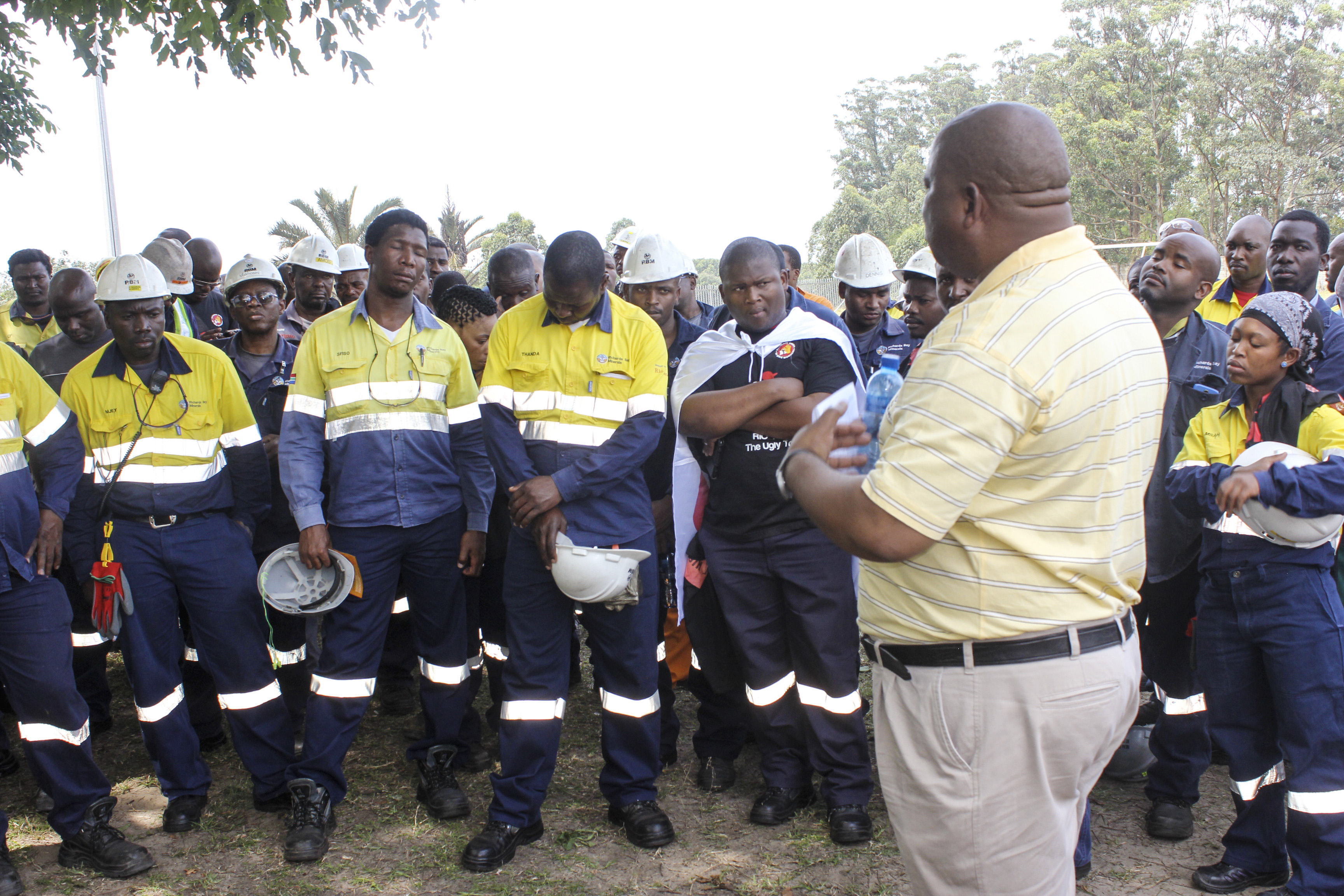 Los dirigentes del afiliado de IndustriALL, NUM, entre ellos el presidente en funciones, Piet Matosa, se reunieron con el comité de sección de la explotación de Rio Tinto en Richards Bay para explicar por qué los sindicatos del mundo se están enfrentando a la empresa. NUM aprovechó la ocasión para distribuir el folleto informativo sobre el día de acción mundial entre sus miembros en Richards Bay.