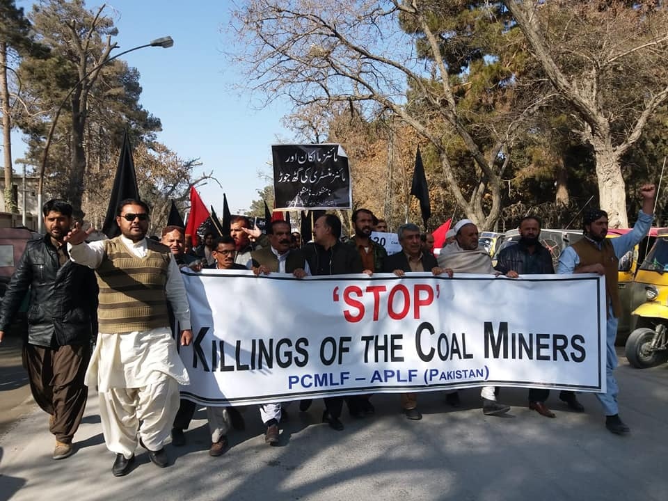 En un comunicado, los sindicatos señalaron: “En 2018 se produjeron varios incidentes en Chamalang, Shahrag, Harnai, Marwar, Sur Inj y Digari, que dejaron martirizados a 120 mineros y cientos de heridos. Esto ha aumentado la sensación de inseguridad entre los mineros pobres”.