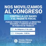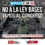 11 junio, 2024Las centrales sindicales de Argentina, los movimientos sociales y organizaciones de derechos humanos convocan a una marcha al Congreso de la República para el próximo 12 de junio, fecha en que se tratará el proyecto de Ley Bases en el Senado.