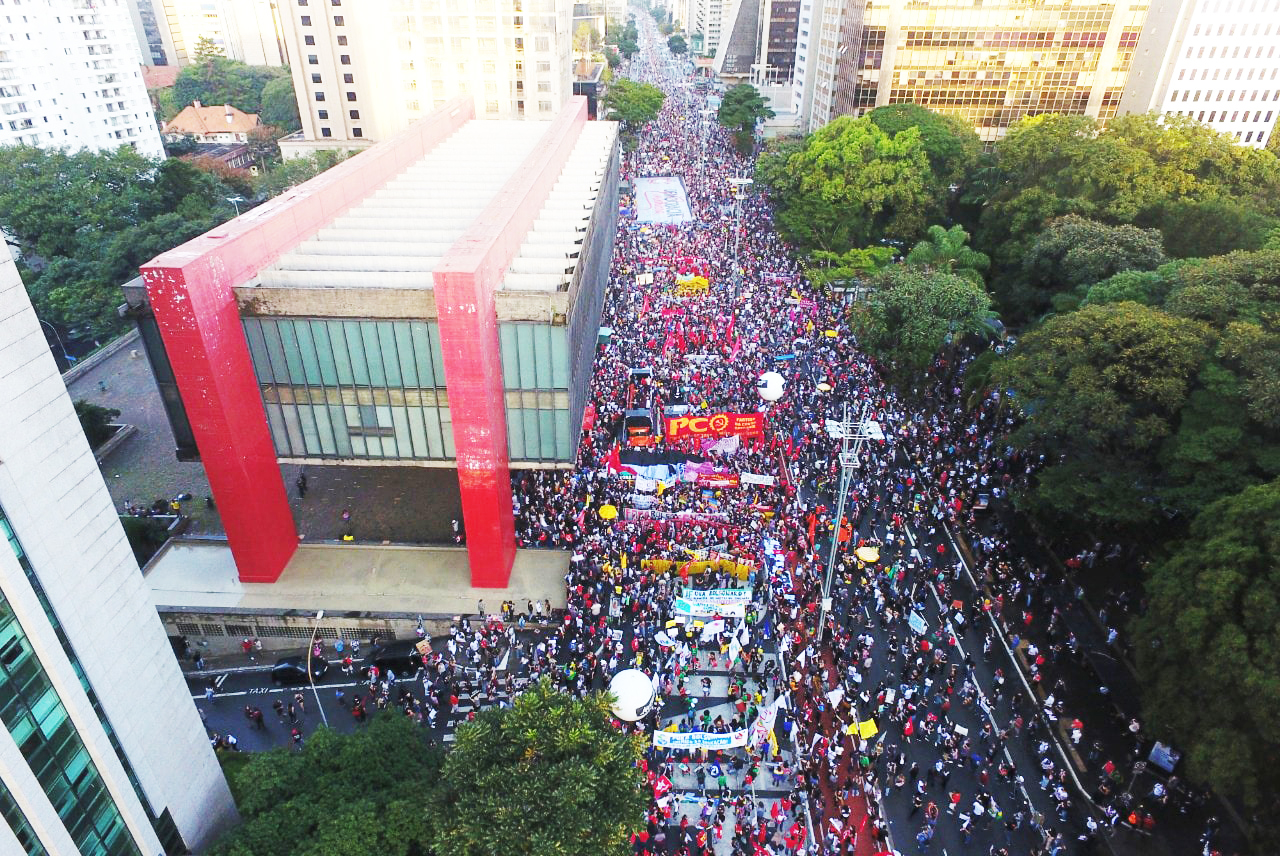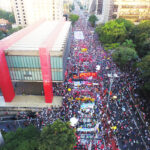 “Las calles de las ciudades brasileñas se tiñeron con los colores de las banderas de todos los movimientos que luchan contra la política genocida del desgobierno de Bolsonaro, el cual niega la existencia de la pandemia y de la crisis de salud que atravesamos. Reavivamos nuestras esperanzas y sueños de cambio, de una vacuna para todos, de justicia, contra el hambre y el desempleo.