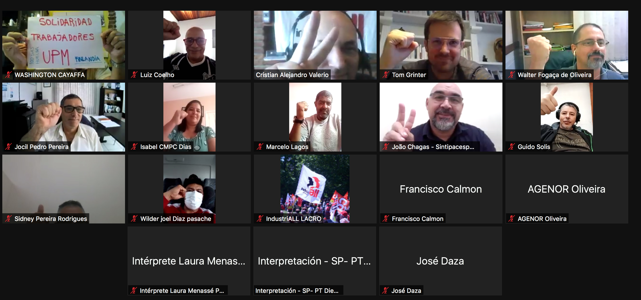 Diversos dirigentes sindicales se reunieron en línea el 7 de abril para intercambiar experiencias sobre los conflictos que enfrenta su organización, los niveles de productividad de la empresa y los próximos pasos como red. El grupo tiene un buen historial de realizar actividades físicas y virtuales, de reunirse con la empresa, de apoyarse mutuamente y de visitar las principales fábricas de Chile y Brasil.