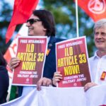 L’article 33 permet à l’OIT de prendre des mesures lorsqu’un État membre ne se conforme pas aux recommandations de sa commission d’enquête. Plus précisément, l’article 33 stipule que lorsqu’un membre ne se conforme pas aux recommandations, le Conseil d’administration peut recommander à la CIT des mesures de nature punitive ou corrective, y compris des sanctions ou d’autres actions, afin d’assurer le respect de ces recommandations.
