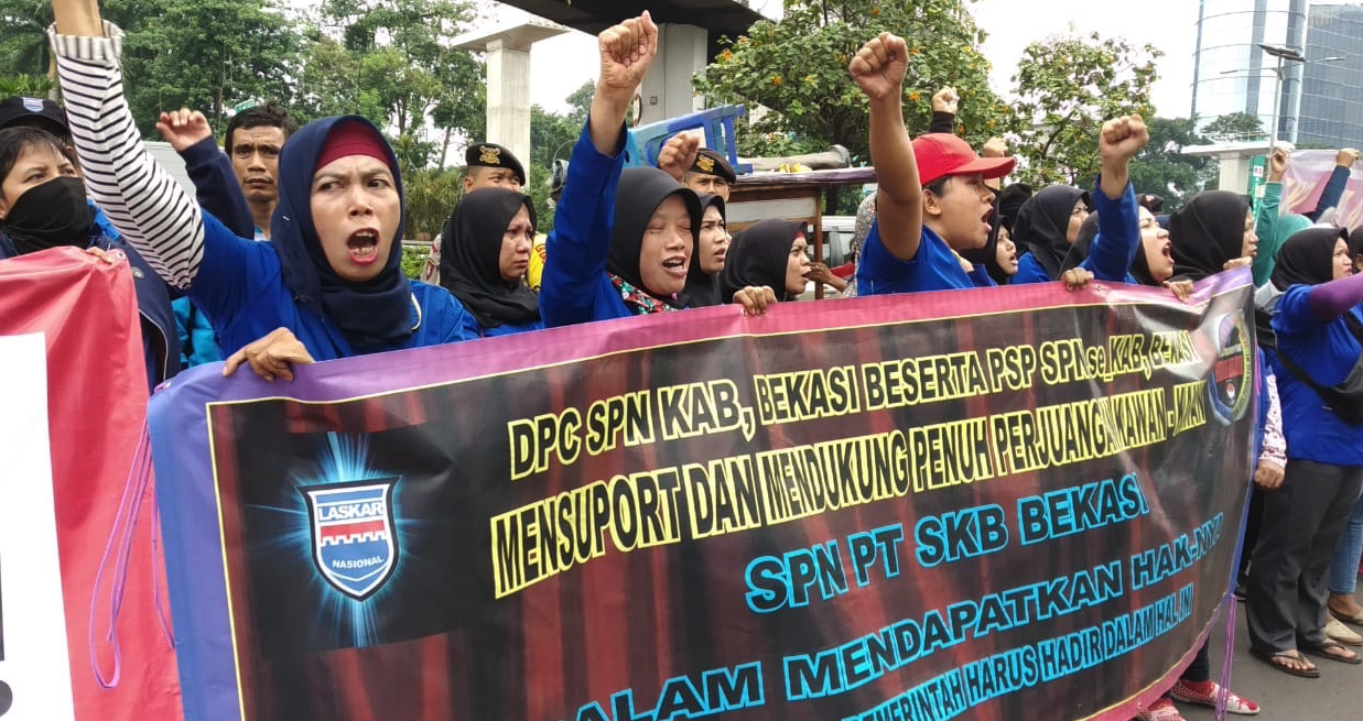 L’usine de confection de PT Selaras Kaus Busana (SKB), située à Bekasi, à l’ouest de la province de Java, employait 4 000 travailleurs, composés principalement de femmes, avant qu’elle ne soit abandonnée brusquement par son propriétaire sud-coréen en octobre 2018.