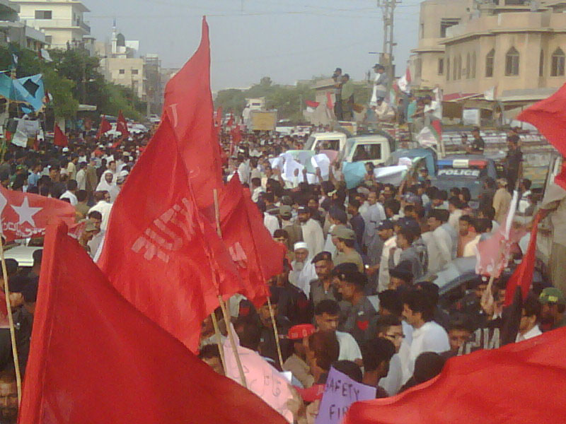 The rally marched through the Karachi industrial area and finished with a large protest meeting in front of the burnt factory. The participants of the march demanded the arrest of the factory owners, compensation for the families of dead and wounded workers, and the institution of criminal cases against responsible government officials.