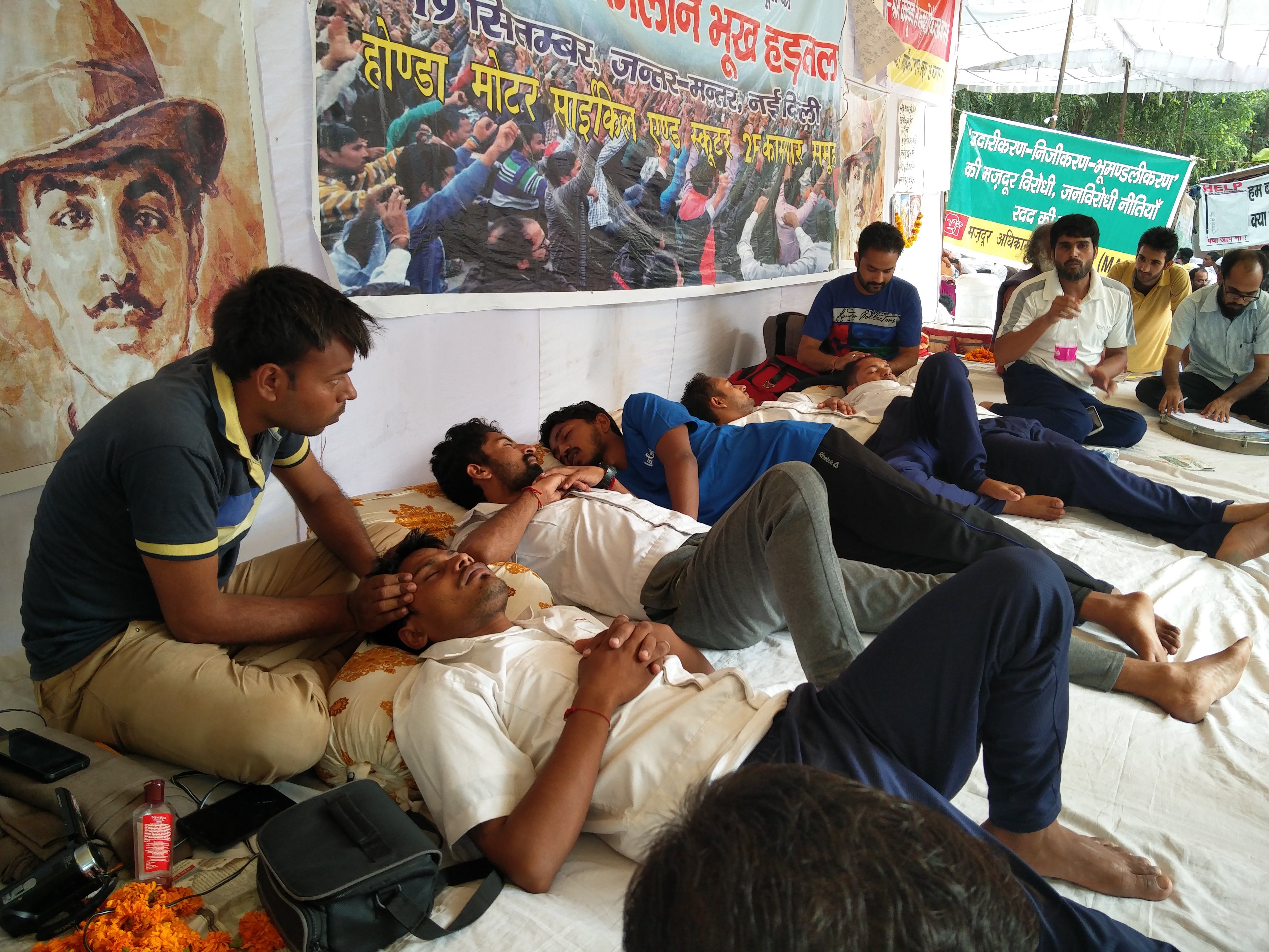 On 26 September, the eighth day of the protest, Vipin Kumar was hospitalized but refused to break his fast. It is a matter of grave concern that workers’ health is deteriorating day by day. However, the five terminated employees including Kumar Naresh Mehta, President of Honda Motorcycle and Scooter 2F Kamgar Union Tapukara, and workers Sunil, Ravi, Avinash and Vipin Kumar are determined to continue the hunger strike until their demands are met.