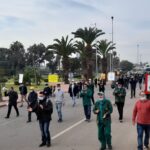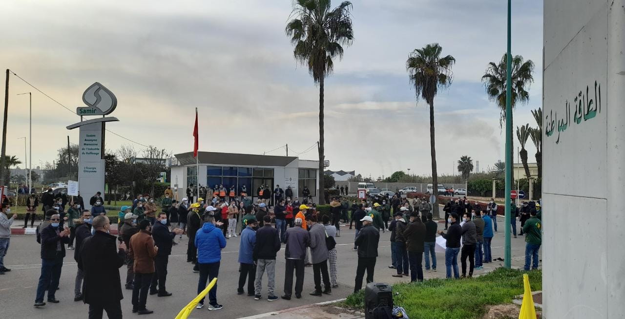 26 January, 2022On 18 January, around 250 workers at Samir oil refinery marched the 1,200 metres from company headquarters to the coastal road to highlight the workers’ precarious situation after the company stopped production more than six years ago due to a failed privatization deal. Workers are calling for government intervention to save the refinery and their jobs.