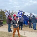 13 октября, 2023Представители Глобального союза IndustriALL стояли в пикете вместе с членами Союза авторабочих (UAW), демонстрируя солидарность с участниками продолжающейся забастовки против компаний Ford, General Motors и Stellantis, известных как Большая детройтская тройка. Входящий в IndustriALL профсоюз UAW бастует с 14 сентября.