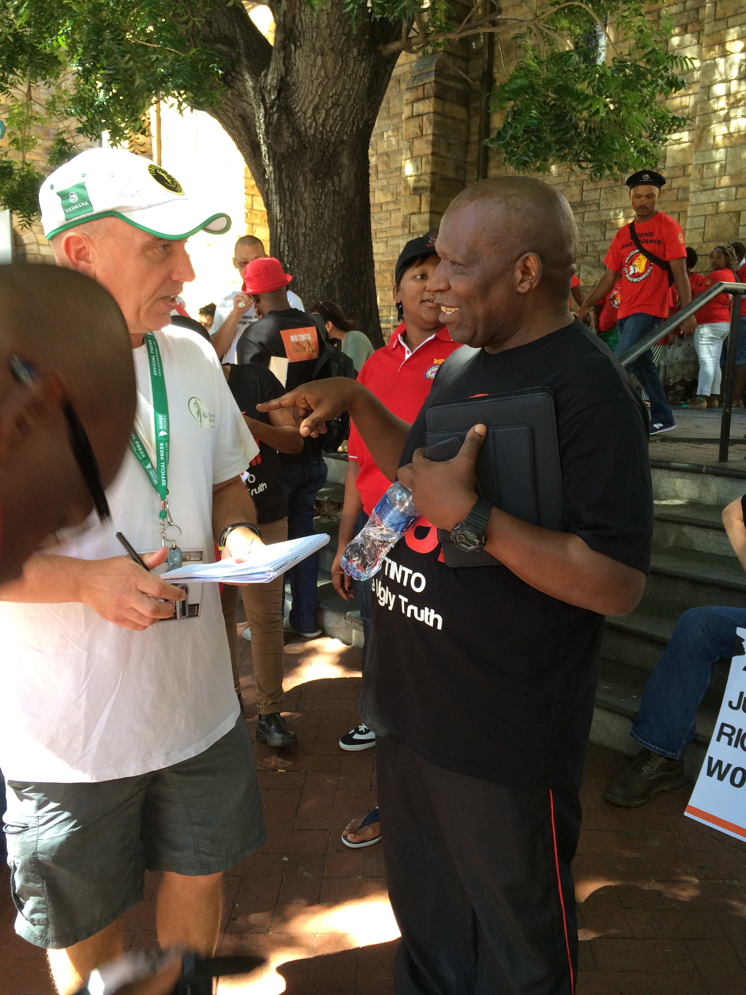 Митинг завершился около Кейптаунского конференц-центра, в котором проходил последний день крупнейшего международного конгресса представителей горнодобывающей промышленности (Indaba). Члены профсоюзов работников горнодобывающей промышленности, а также активисты НГО собрались вместе, чтобы привлечь внимание к борьбе за достойный труд рабочих Rio Tinto во всем мире.
