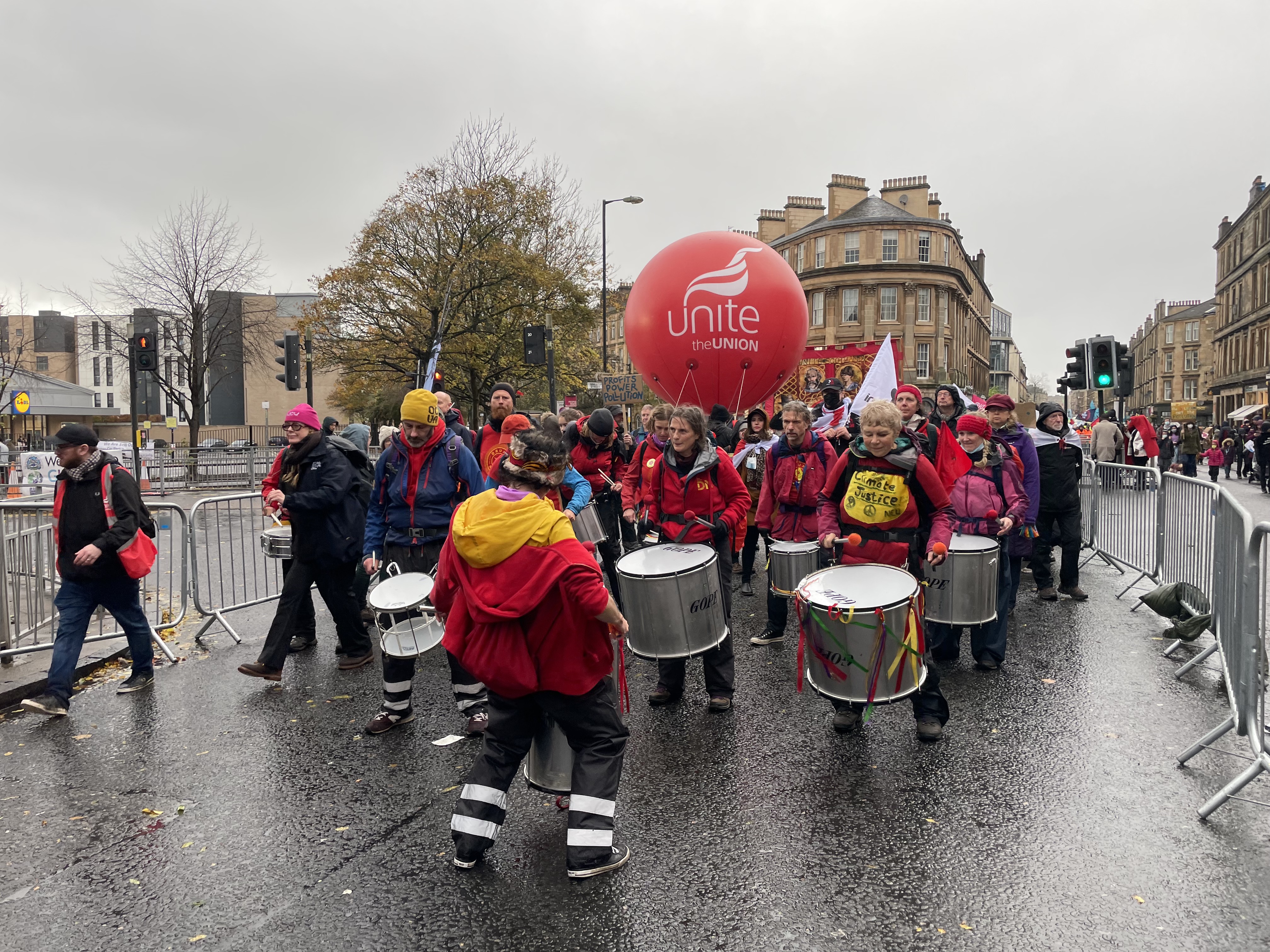 На следующий день 100000 протестующих, несмотря на очень холодную погоду и проливной дождь, прошли маршем по городу, отметив Всемирный день действий за климатическую справедливость. Они стали частью глобальной акции, в которой участвовали демонстранты в разных городах по всему миру. Демонстранты в Глазго, включая большую группу представителей профсоюзов и рабочих, прошли от парка Келвингроув до Глазго-Грин.