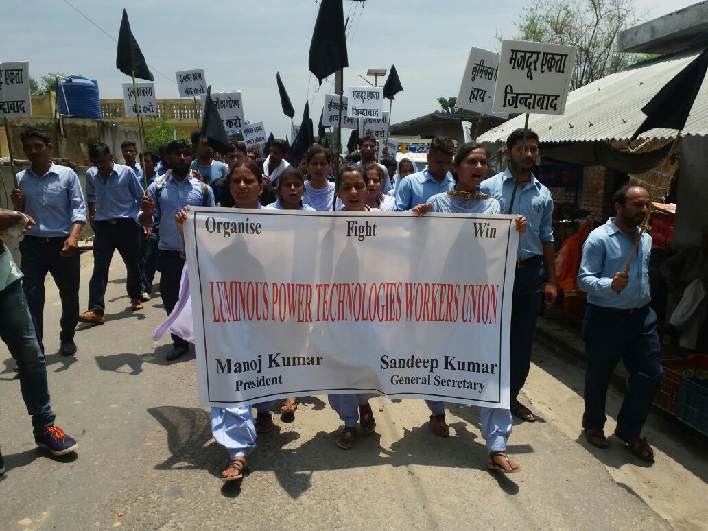 9 июня 2018 года рабочие Luminous Power Technologies провели митинг около завода Gagret Tehsil Amb в округе Уна, штат Химачал-Прадеш. Они осудили решение администрации о переводе должностных лиц профсоюза на другие рабочие места и потребовали уважать право на свободу объединения и ведение коллективных переговоров.